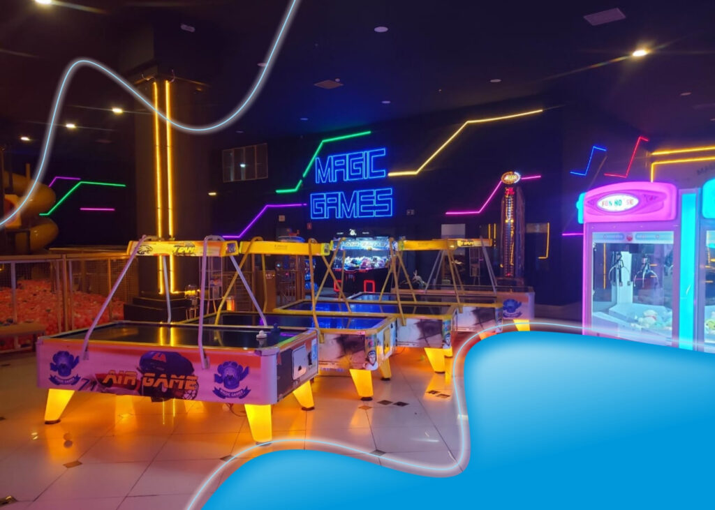 Temos atrações para diferentes faixas etárias, desde o Kid Play para os menores até jogos mais desafiadores para crianças maiores e adolescentes. Nosso ambiente é seguro e adequado para toda a família.